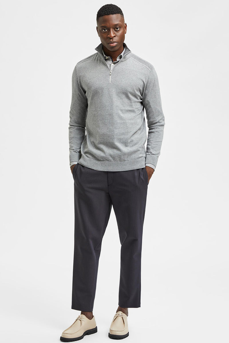 Tray LS Merino Knit Half Zip Medium Grey Melange