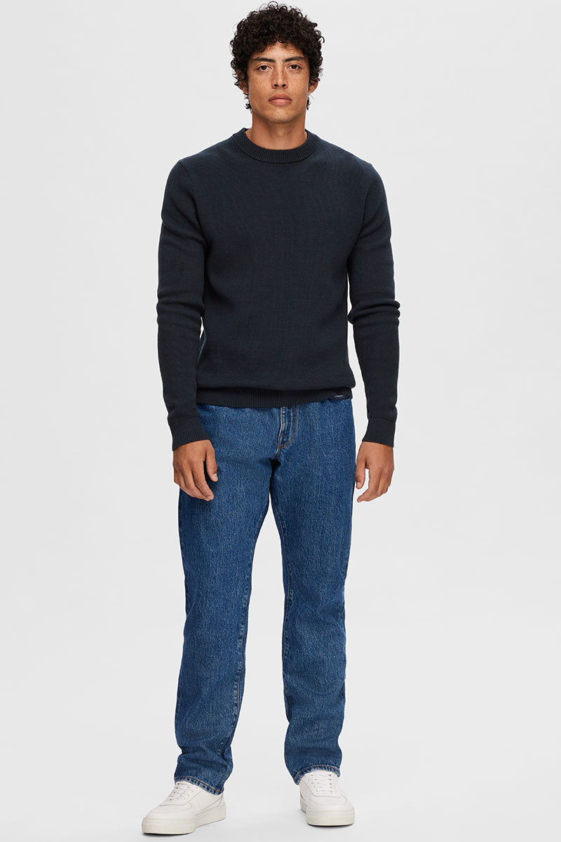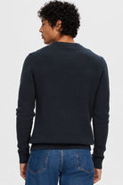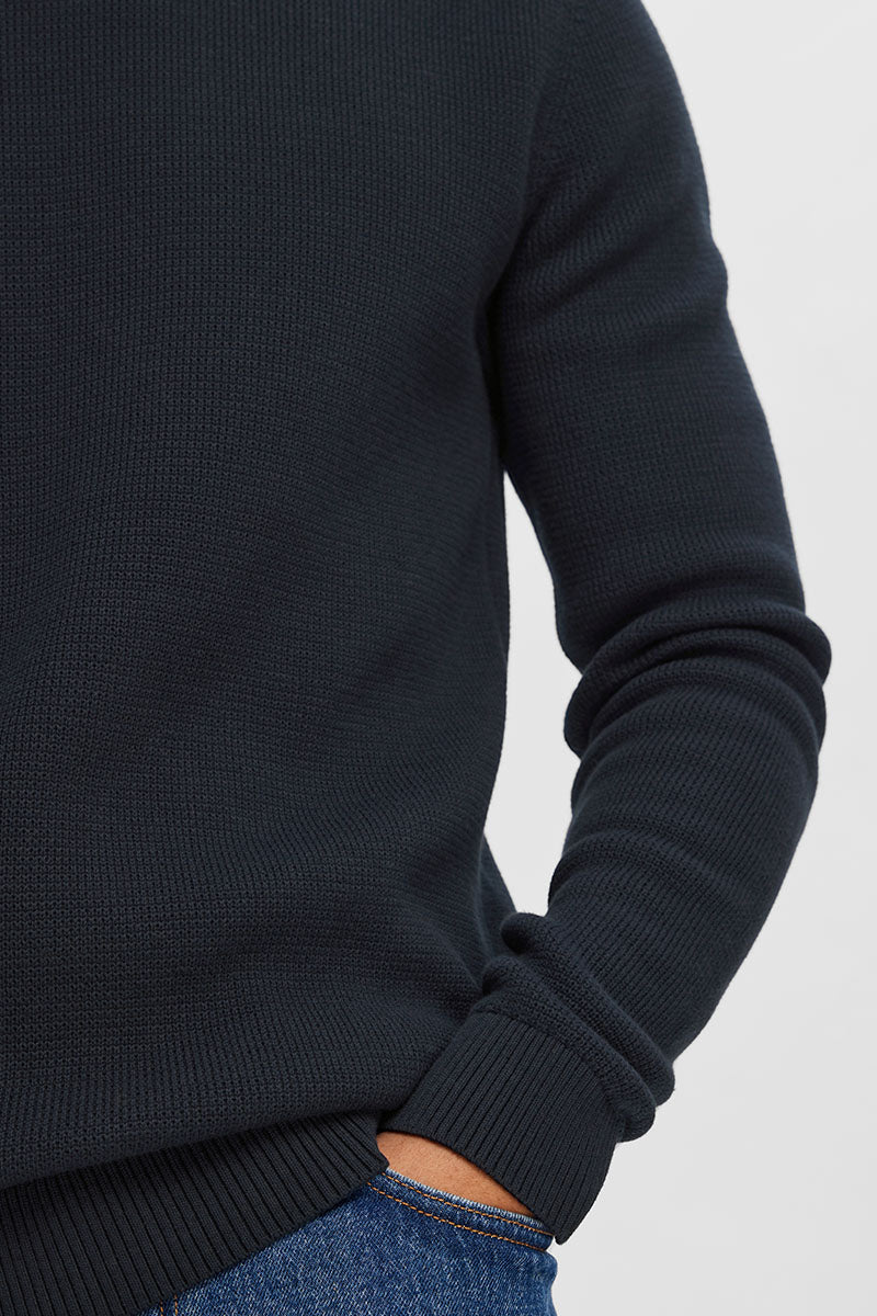 - Dunkelblauer Strickpullover mit langen Ärmeln im Regular Fit