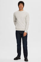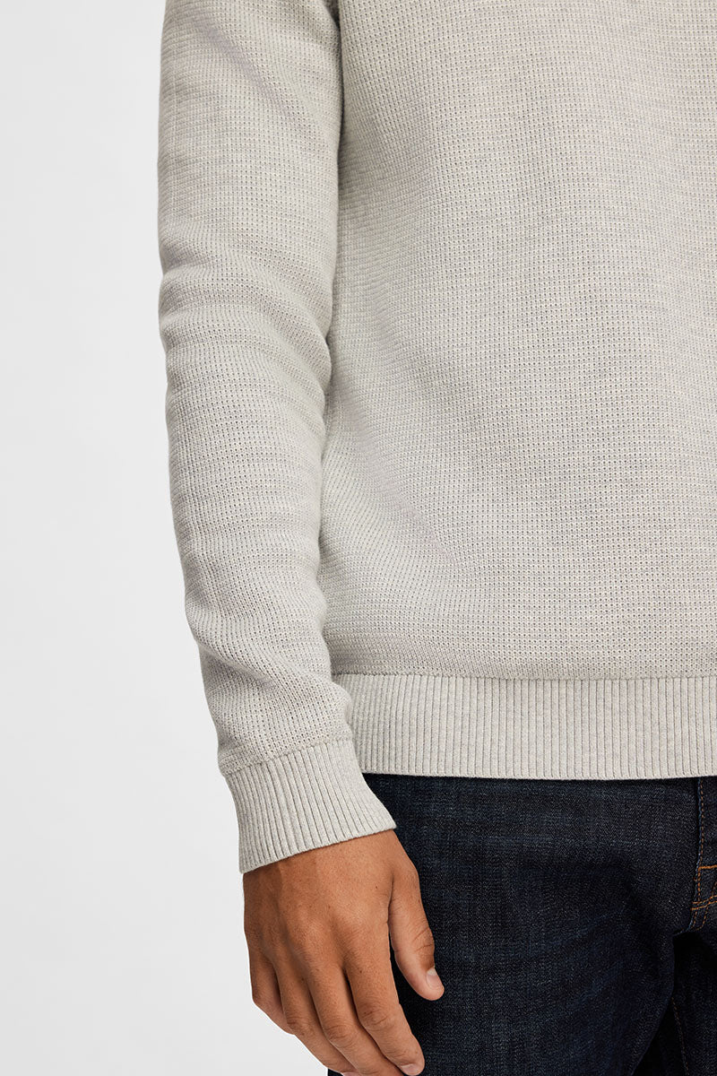 Dane LS Structure Knit Crew Neck Light Grey Melange