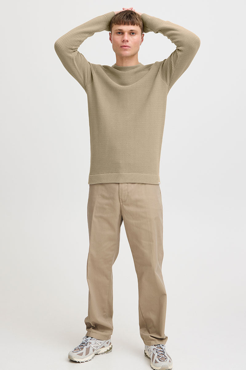 - Der Pullover hat gerippte Kanten am Saum, an den Ärmeln und am Hals.