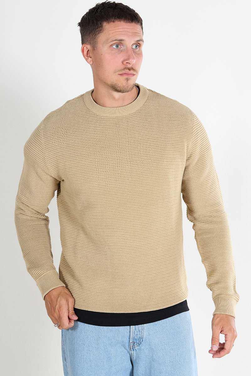 Dane LS Structure Knit Crew Neck Oatmeal