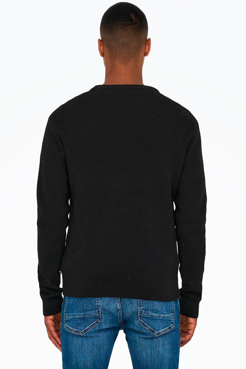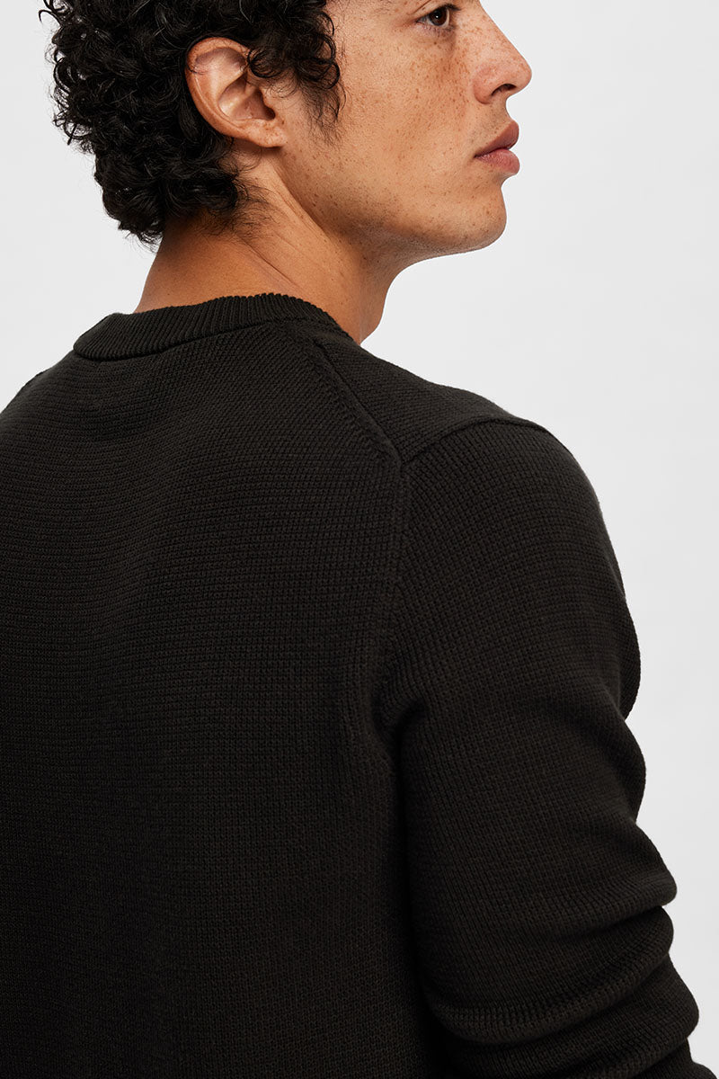 Dane LS Structure Knit Crew Neck Black