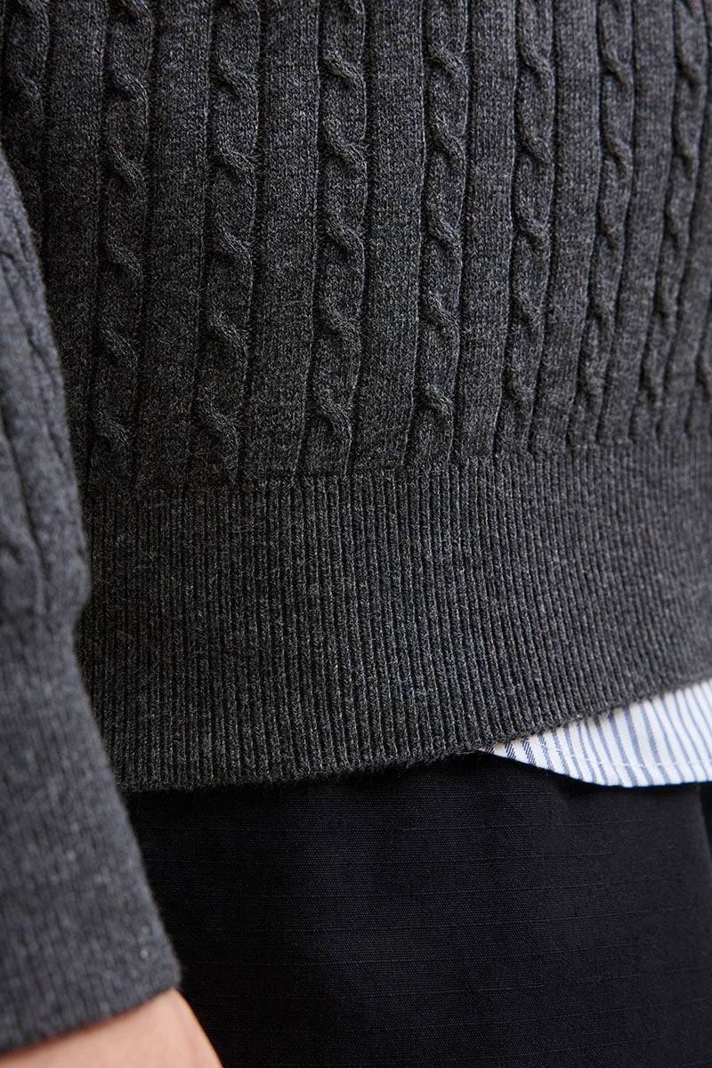 Emil Knit Cable Crew Neck Dark Grey Melange