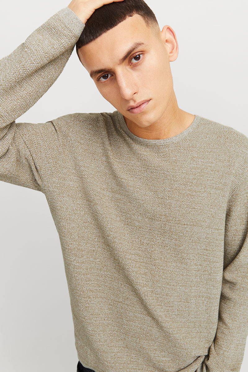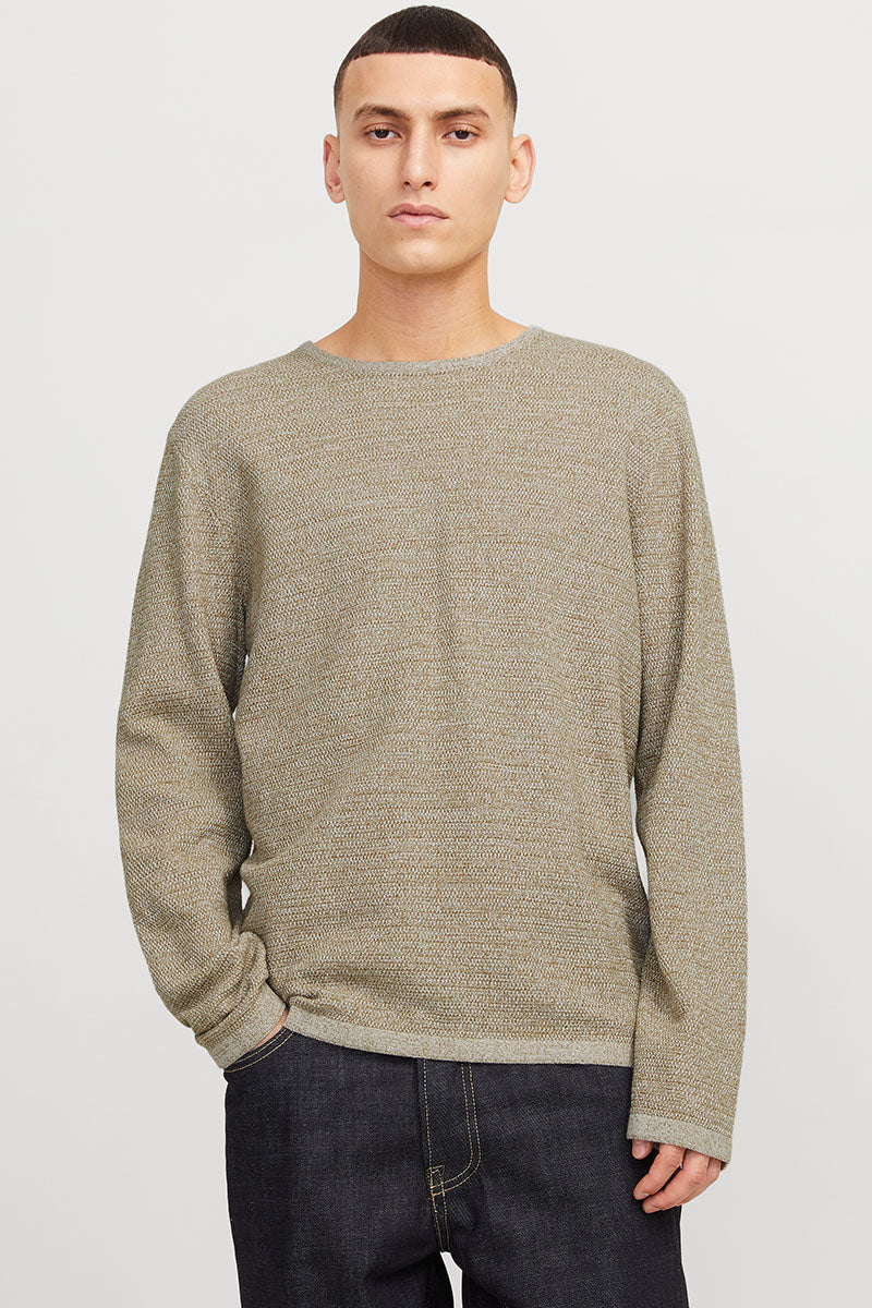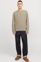 - Beiger Strickpullover mit langen Ärmeln im Relaxed Fit