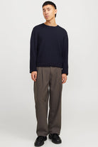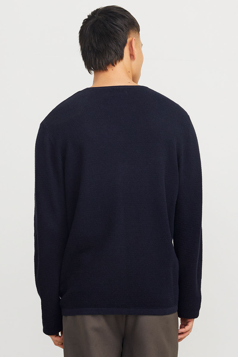 - Dunkelblauer Strickpullover mit langen Ärmeln im Relaxed Fit