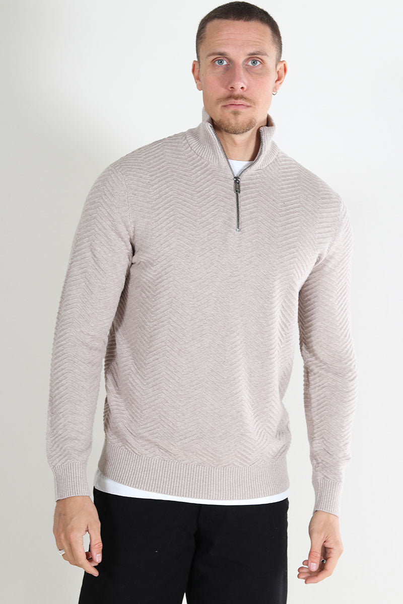 Dane LS Structure Knit Half Zip Light Grey Melange