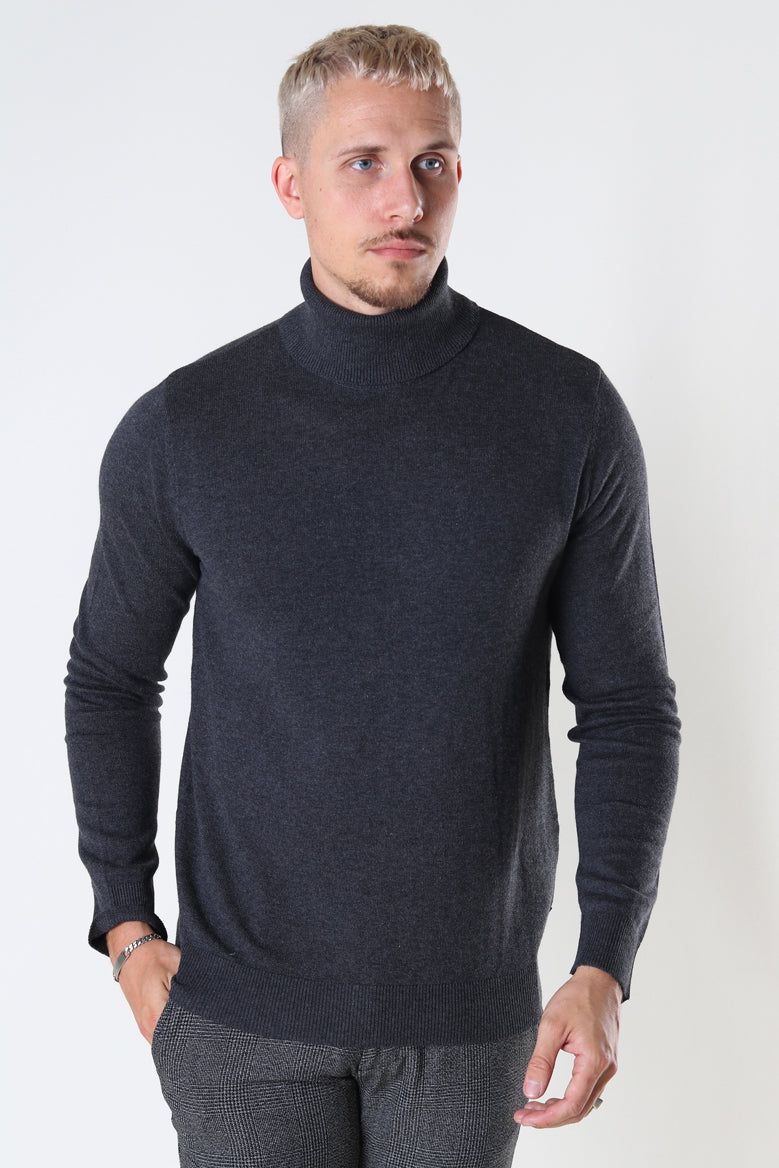 EMIL KNIT ROLL NECK Dark Grey Melange