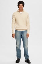 Dane LS Structure Knit Half Zip Oatmeal