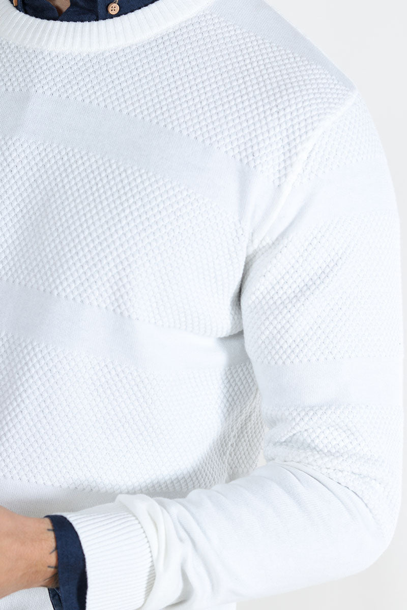 - Strickpullover mit gestreiftem Muster.