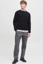 - Schwarzer langärmeliger Strickpullover in Regular Fit