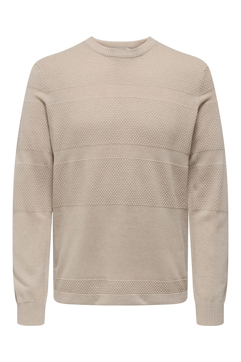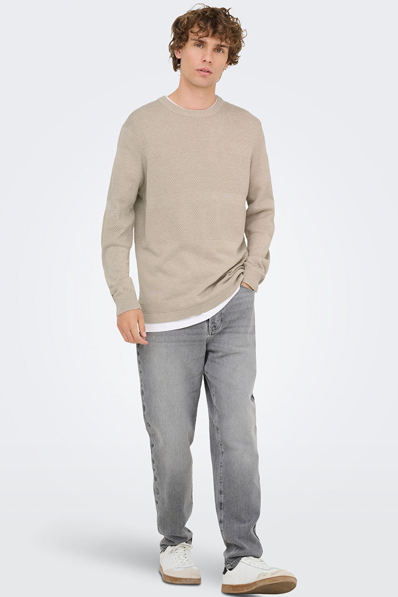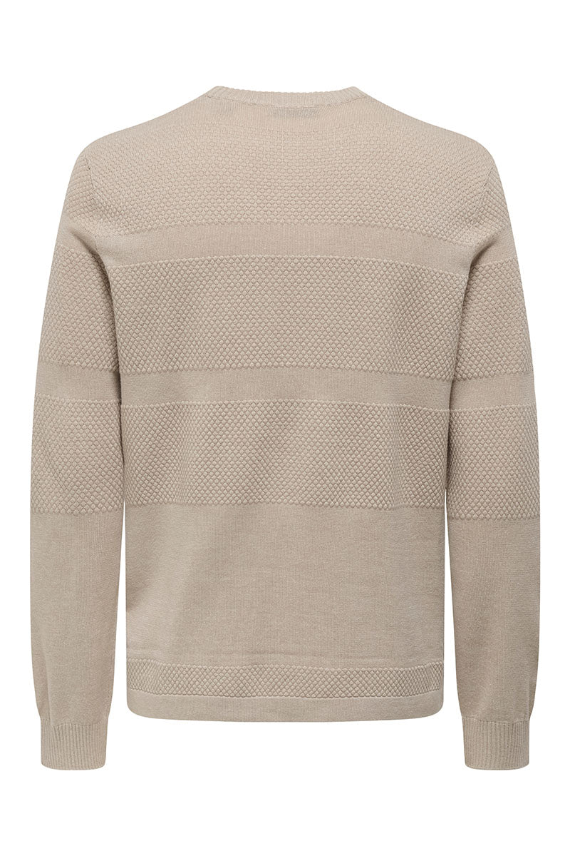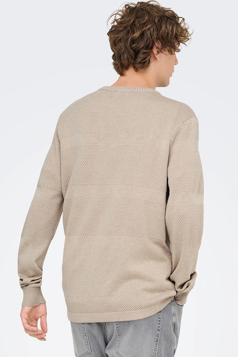 - Der Pullover hat einen Rundhalsausschnitt mit Rippbündchen sowie Rippbündchen an den Ärmeln