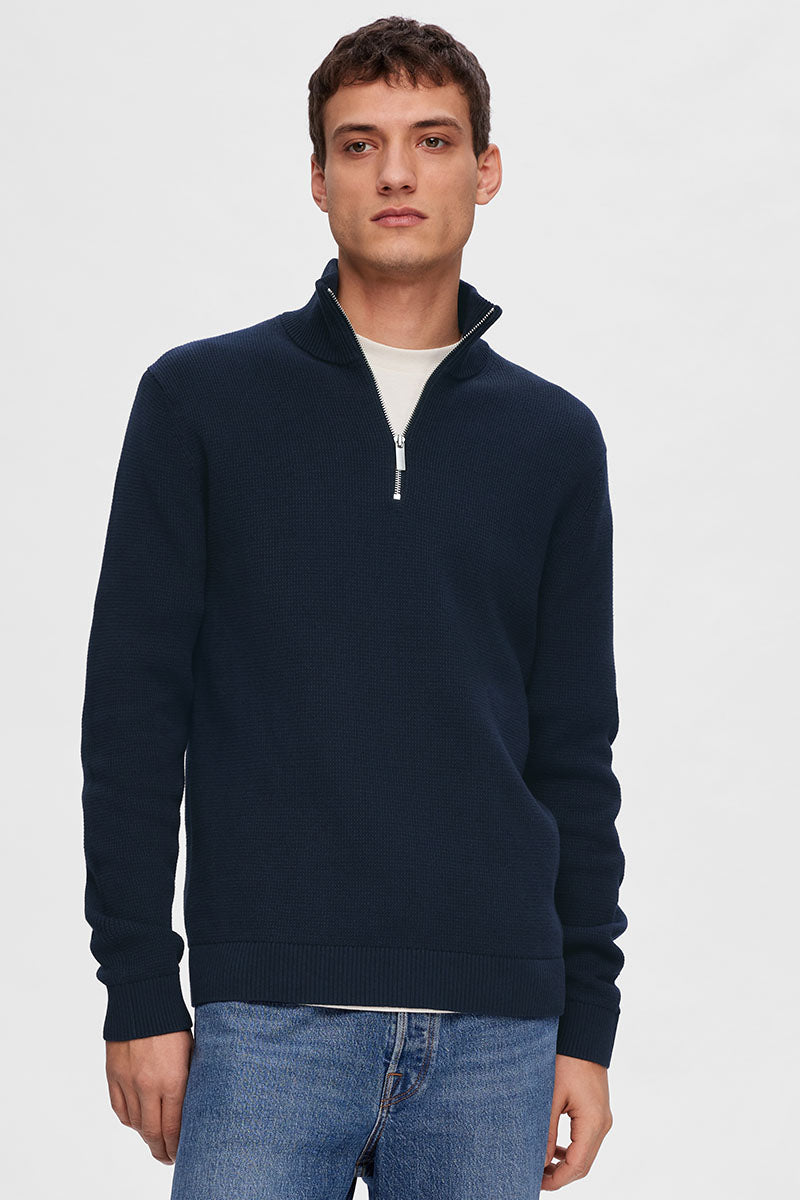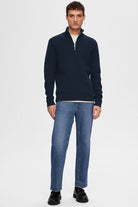 • Dunkelblauer langärmeliger Strickpullover im Regular Fit