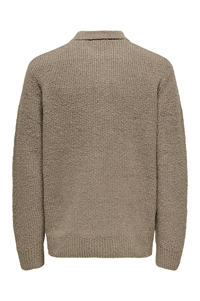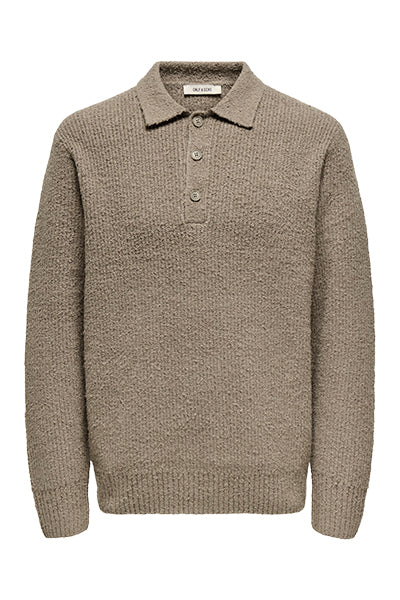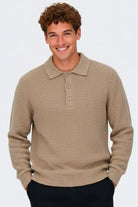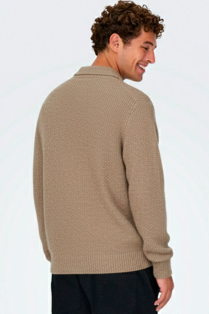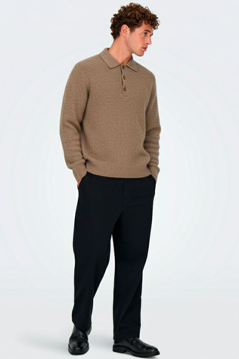 - Der Pullover bietet einen gestrickten Kragen und 3 Knöpfe oben. Außerdem hat er Rippenabschlüsse am Saum und an den Ärmeln