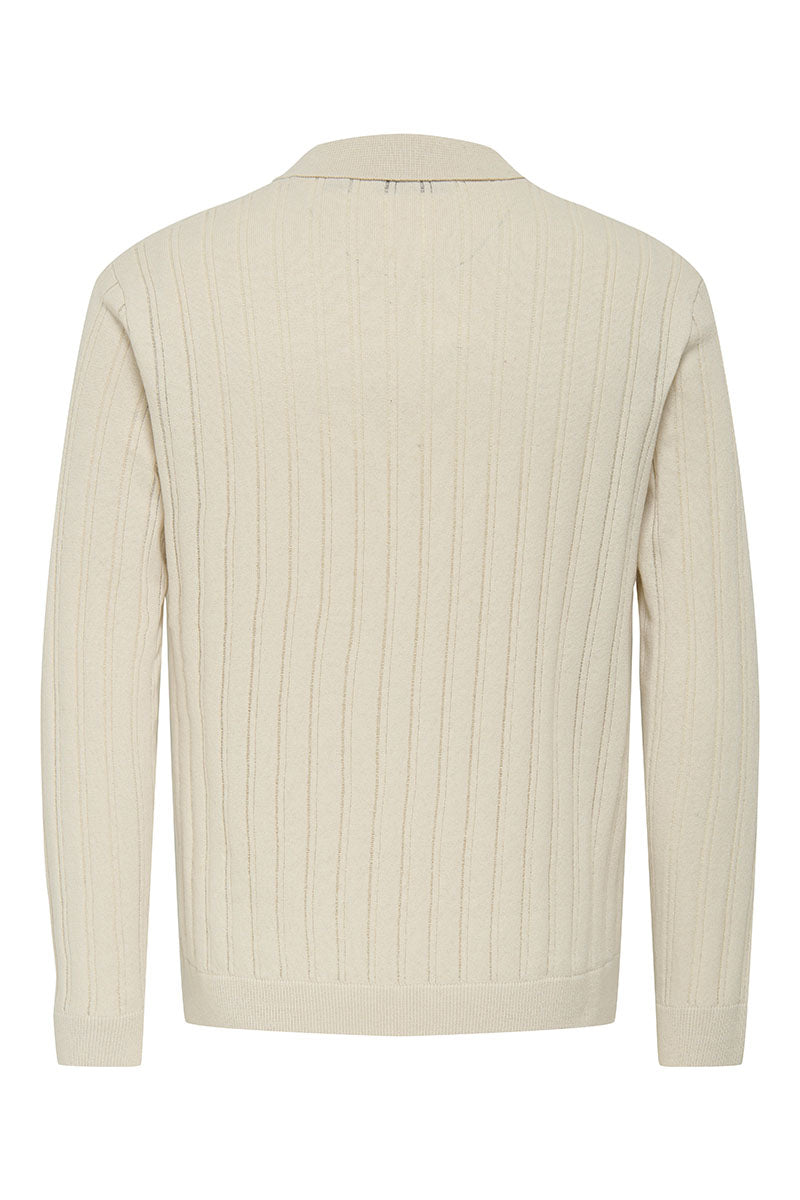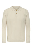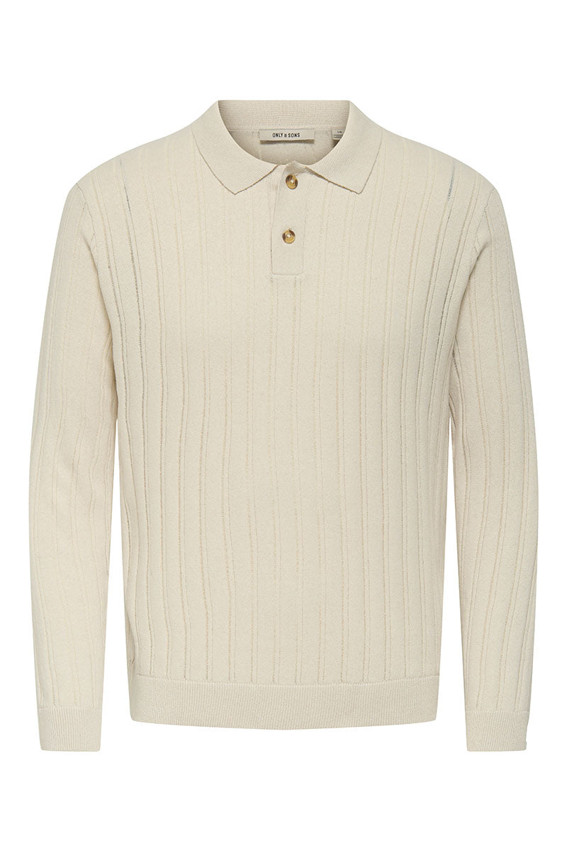 - Beiger langärmliger Polo‑Strick in Regular Fit