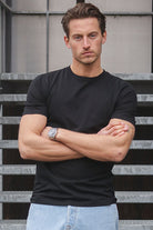 Design und Passform: Das T-Shirt hat einen leicht taillierten Schnitt mit Seitennähten und angepassten Ärmeln für einen modernen Look. Es ist LABELFREE mit nur einem kleinen Größenetikett auf der linken Seite des Nackens.