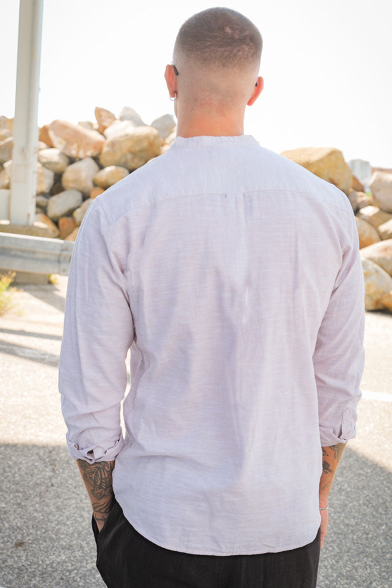 CAIDEN LS SOLID LINEN MAO Hemd Chinchilla