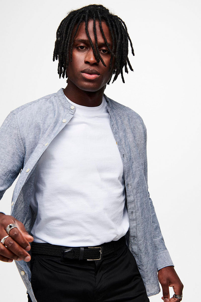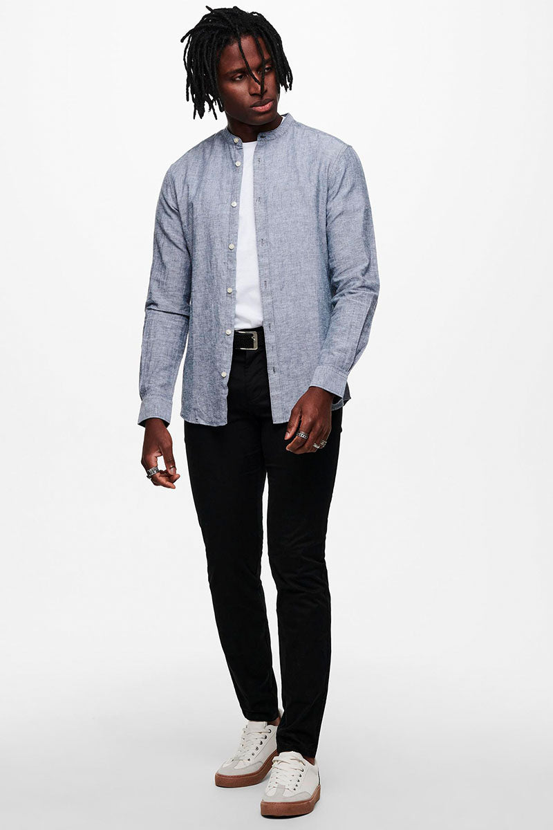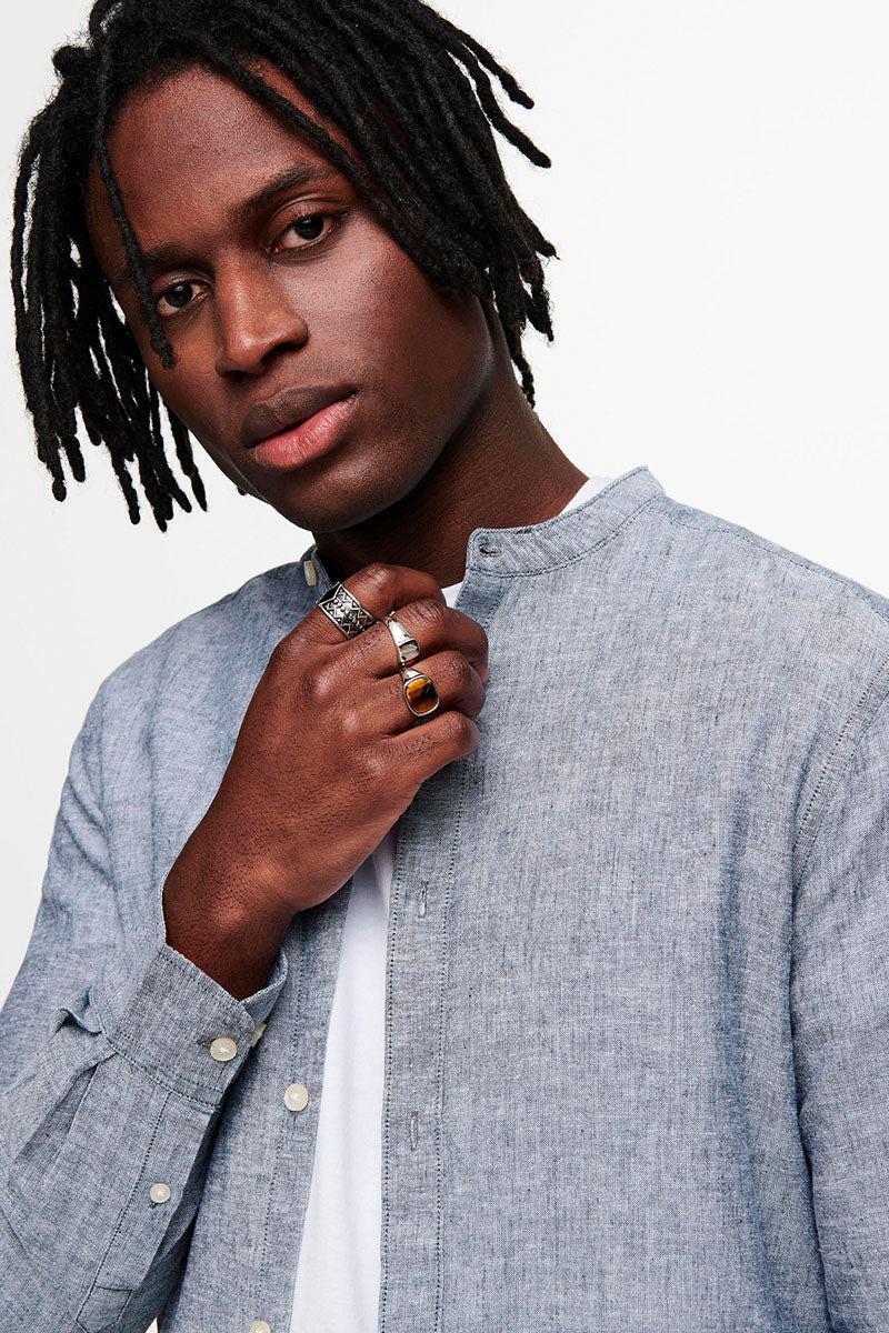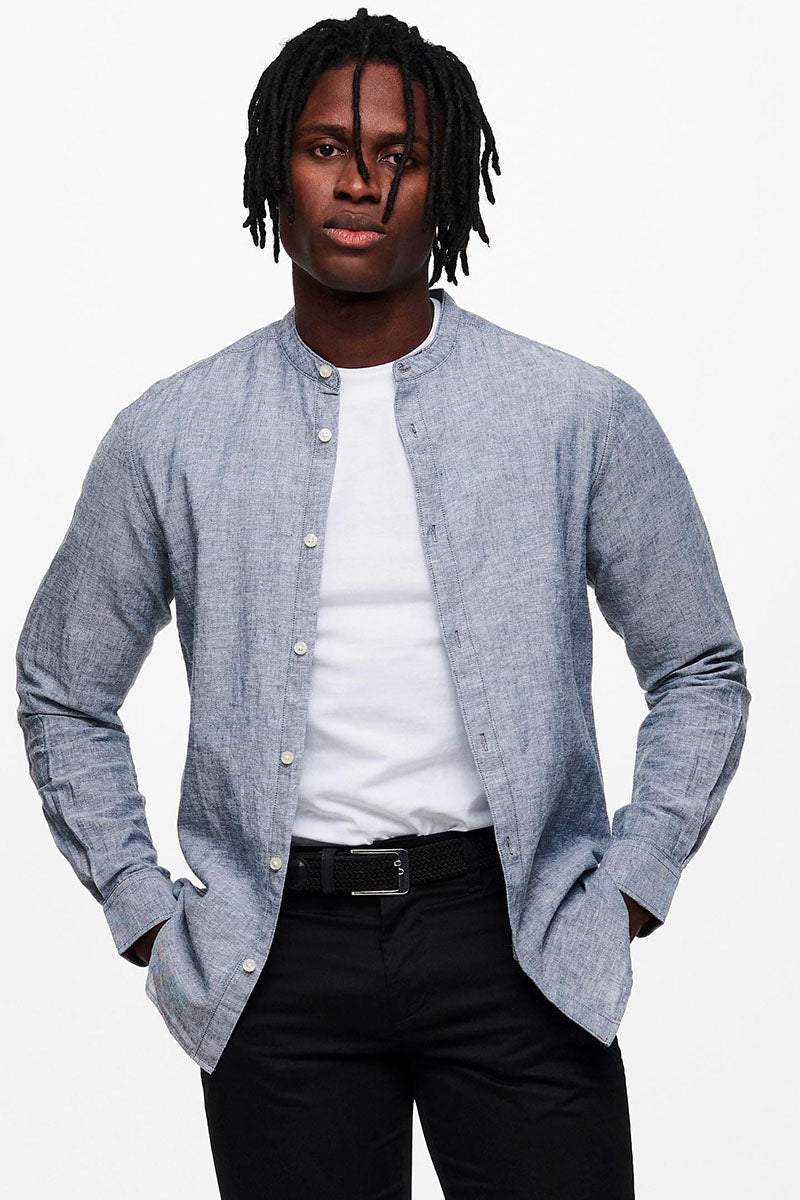 CAIDEN LS SOLID LINEN MAO Hemd Dress Blues