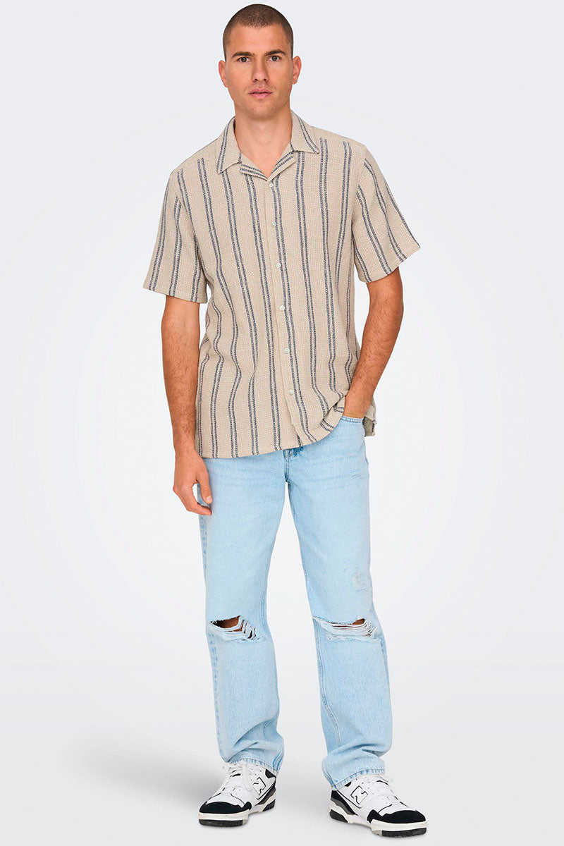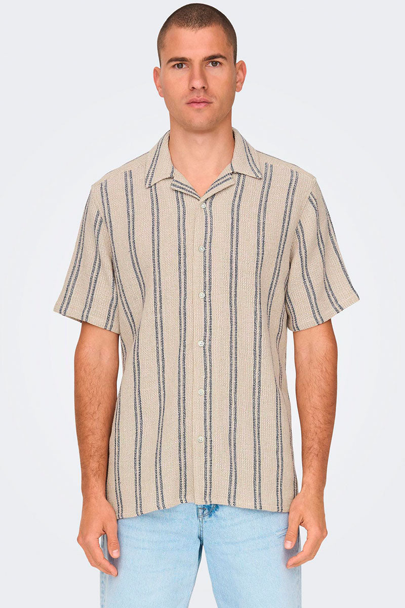 Trev Reg Structure Stripe SS Hemd Vintage Khaki