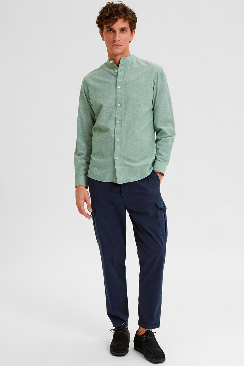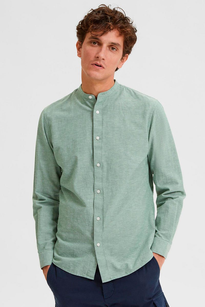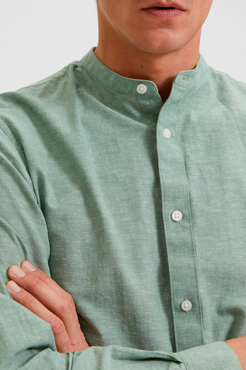 SLHSLIMNEW-LINEN Hemd LS BAND W Desert Sage