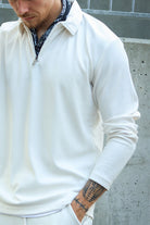 Relax Plisse Half Zip LS Polo Egret