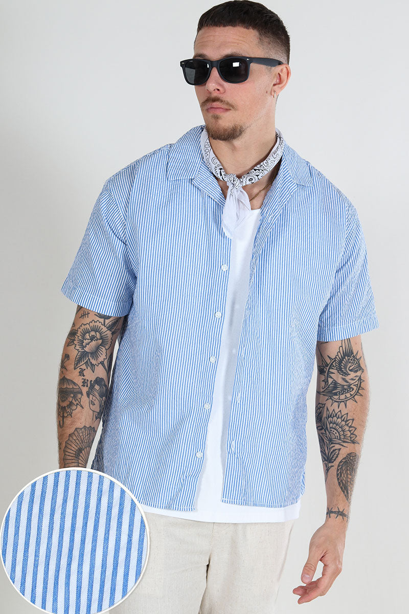 Aydan Seersucker Resort Hemd SS Cashmere Blue