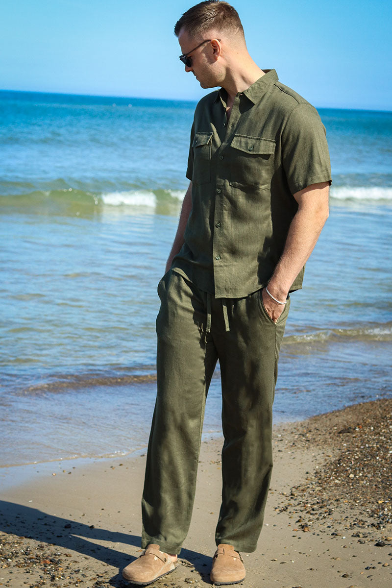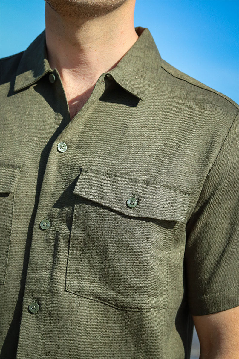 Kari Relaxed SS Shirt Viscose Linen Olive Night