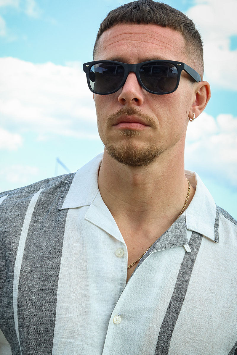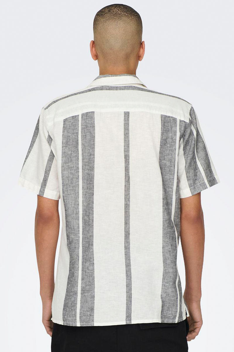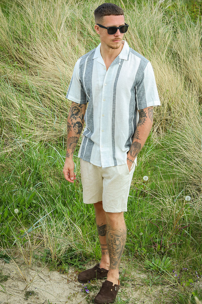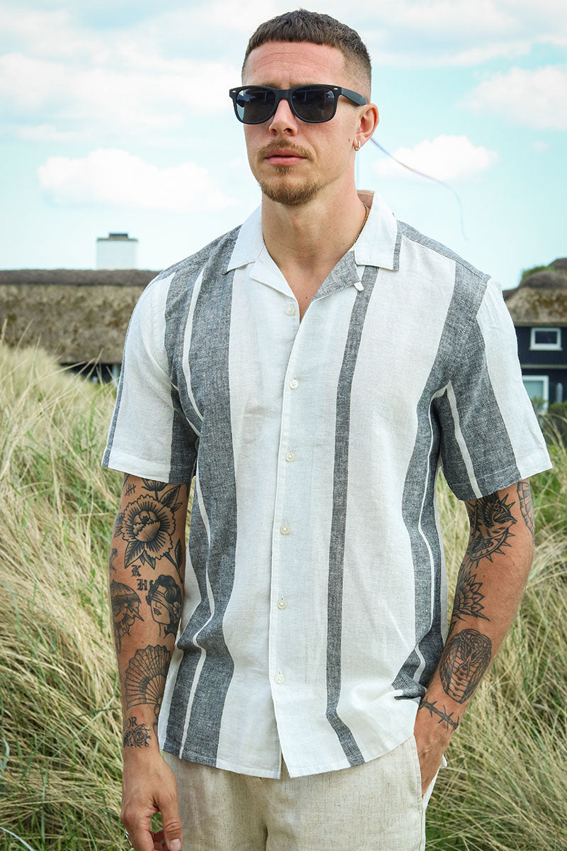 Caiden SS Stripe Linen Resort Shirt Cloud Dancer