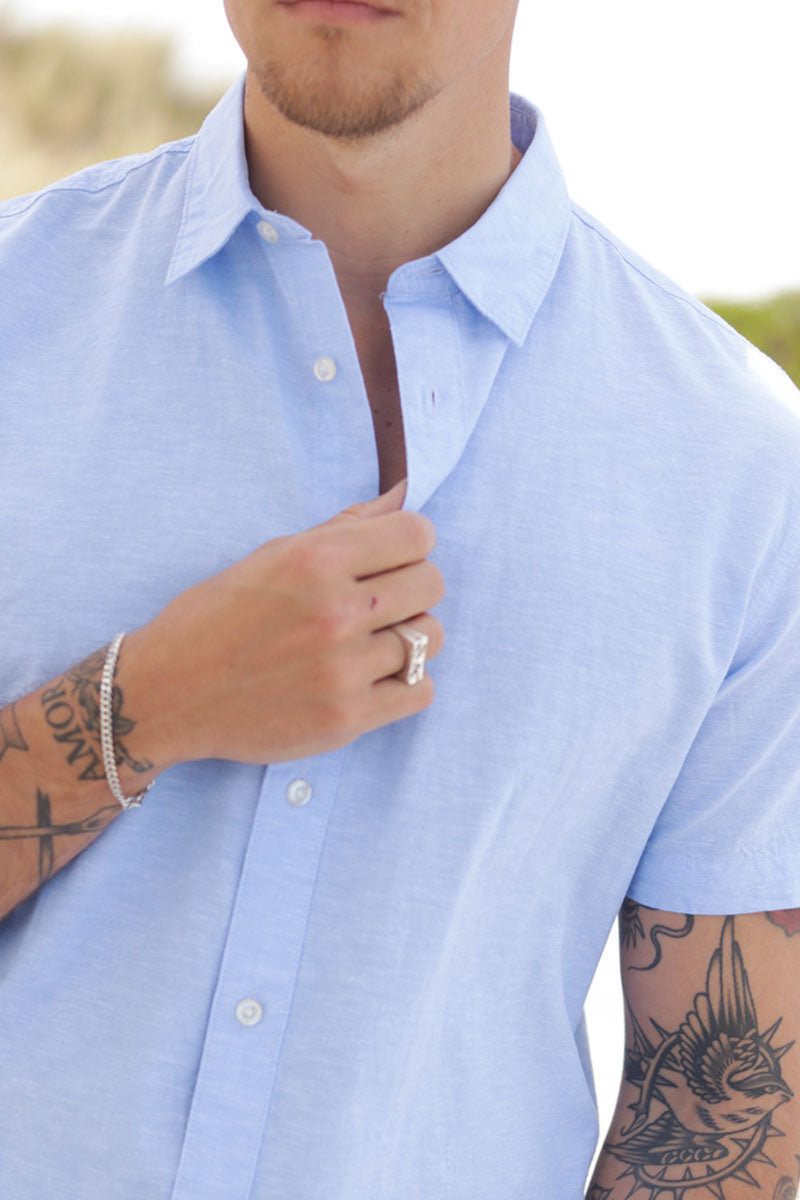 Regular Sun Linen Shirt SS Cashmere Blue / White