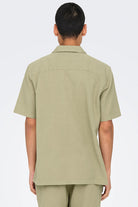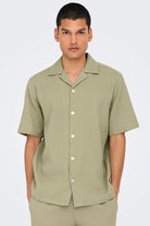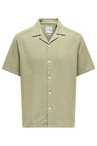 - Beiges kurzärmeliges Hemd mit regulärer Passform