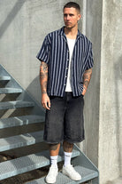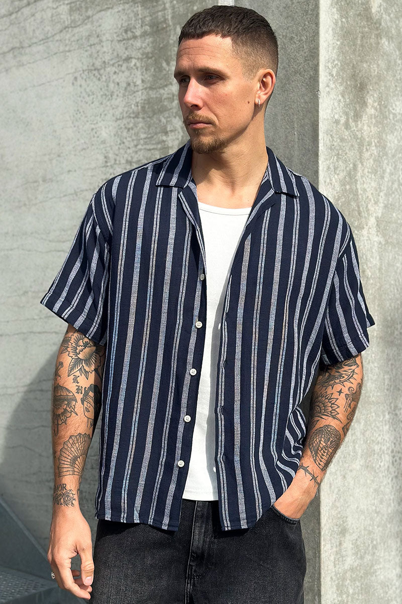- Kurzarmhemd mit Resortkragen und Knopfverschluss