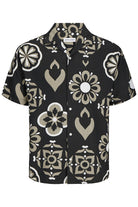 - Das Hemd hat einen Resort-Kragen und eine Knopfleiste