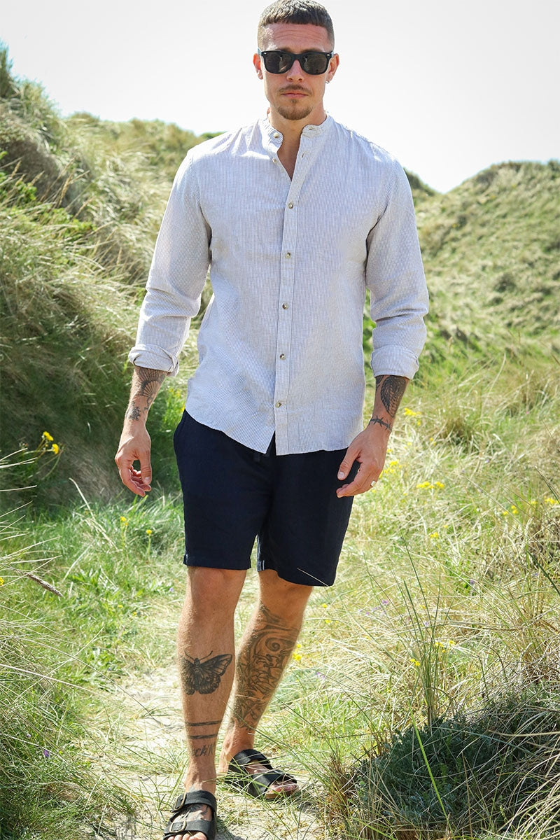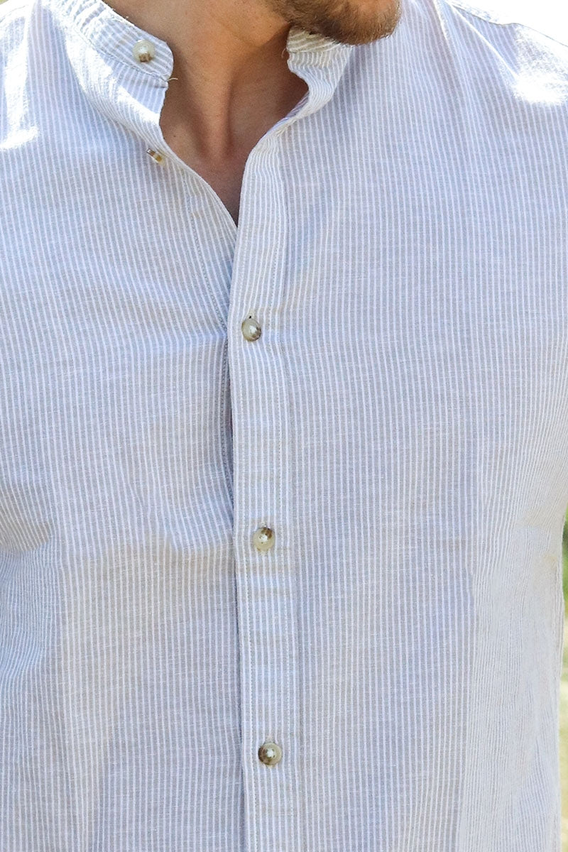 - Twill-Hemd mit Stehkragen und langen Ärmeln