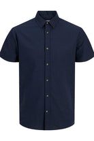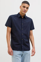 - Kurzarm-Leinenhemd mit klassischem Kragen.