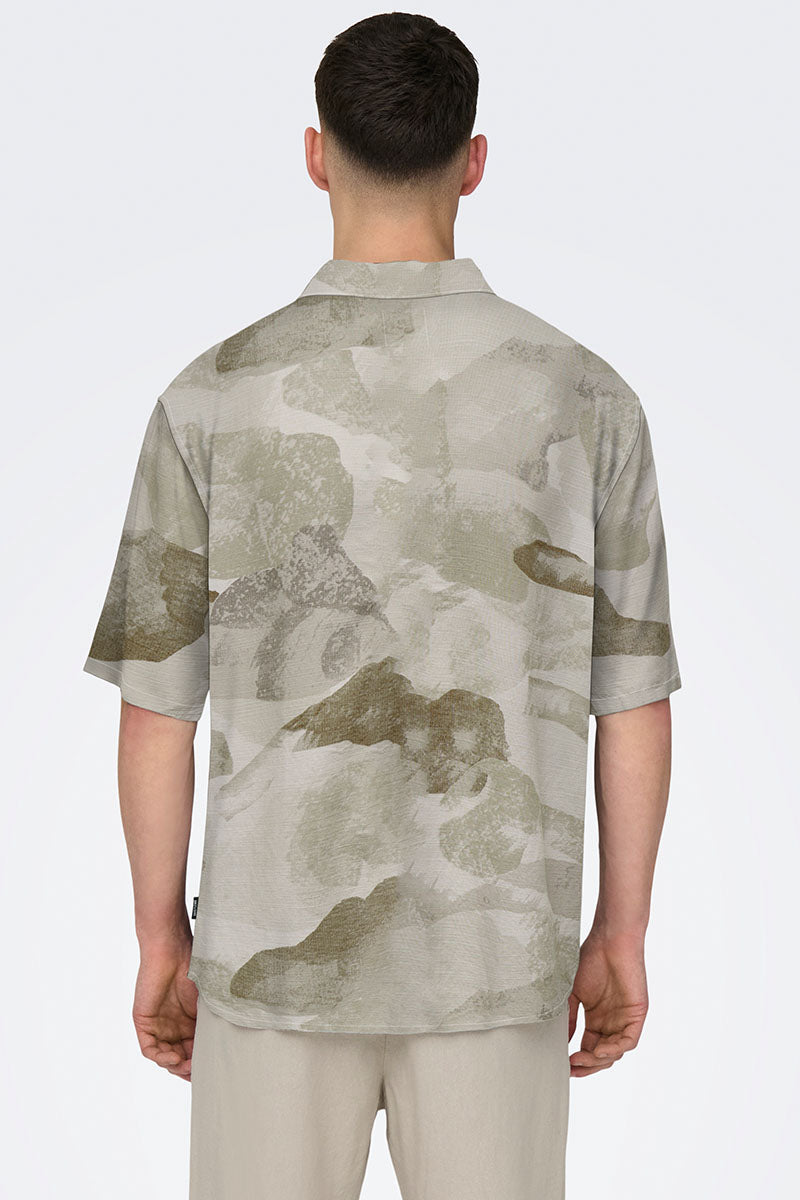 Bud Relaxed Fit AOP Linen Shirt Chinchilla