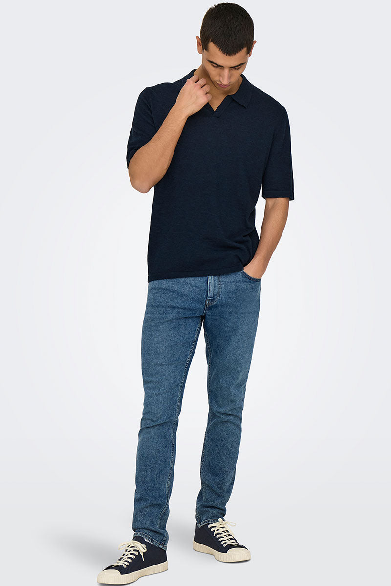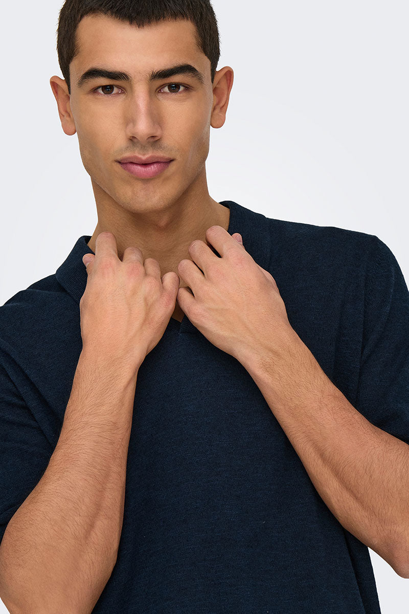George Linen SS Polo Dark Sapphire