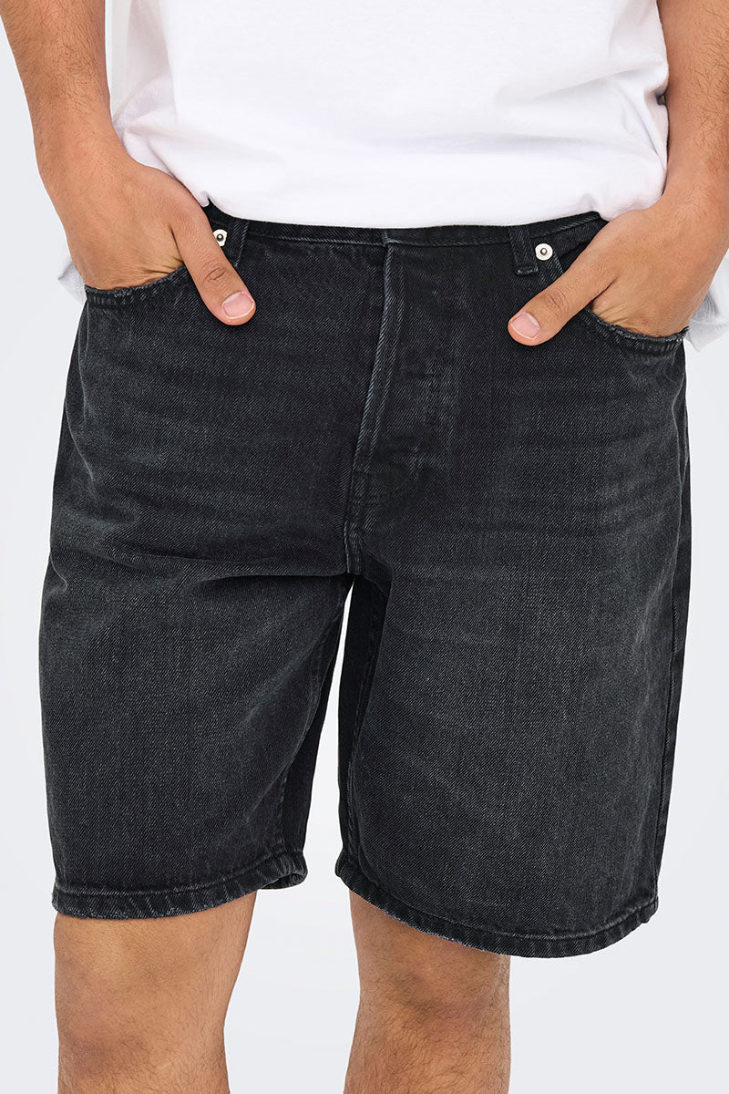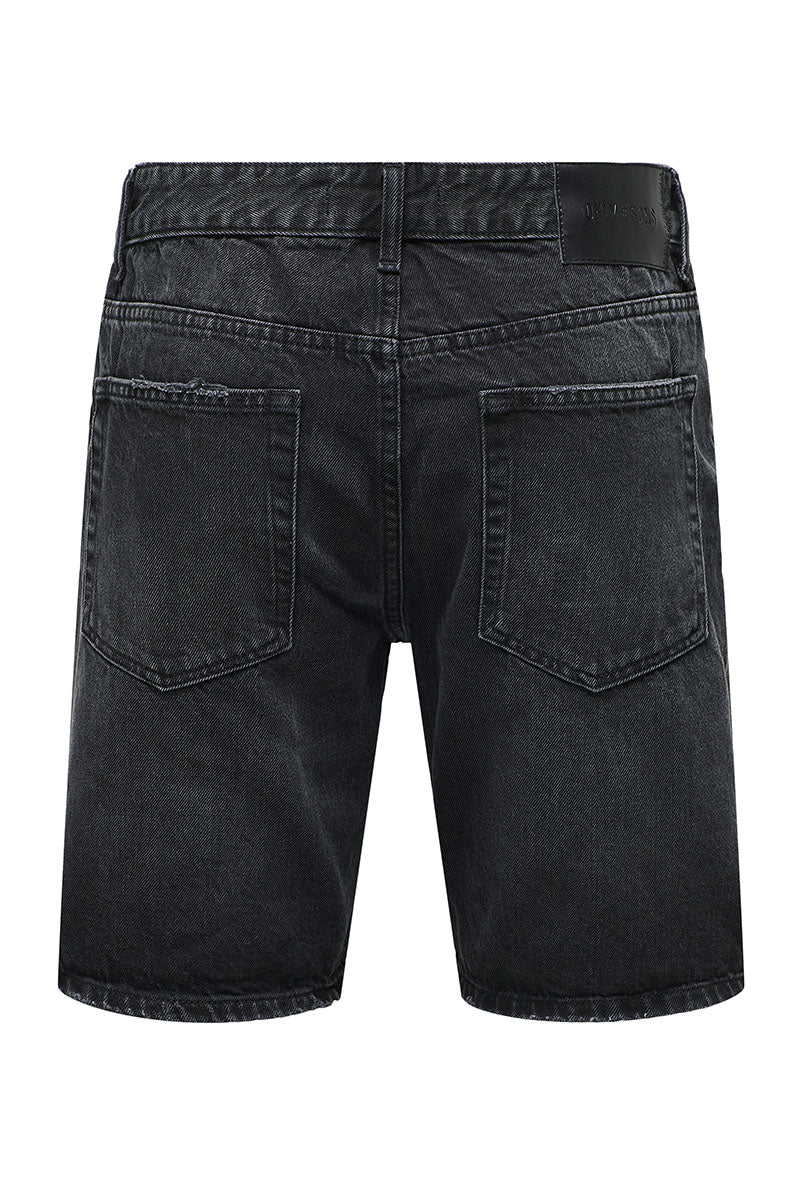 Edge Straight Fit Denim Shorts Black Denim
