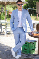 - Hellblaue Leinen-Chinohose im Slim Fit
