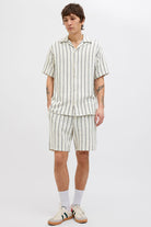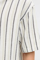 - Das Hemd hat einen Resort-Kragen und eine Knopfleiste