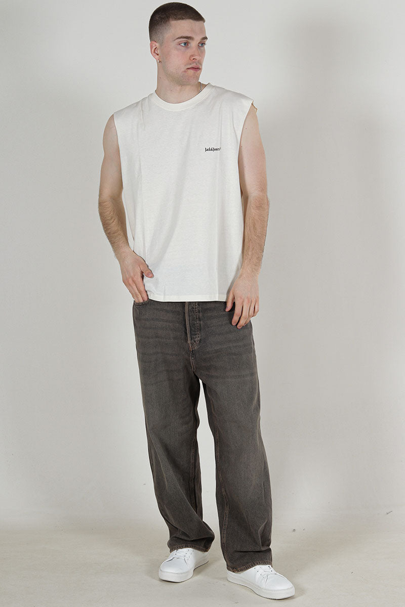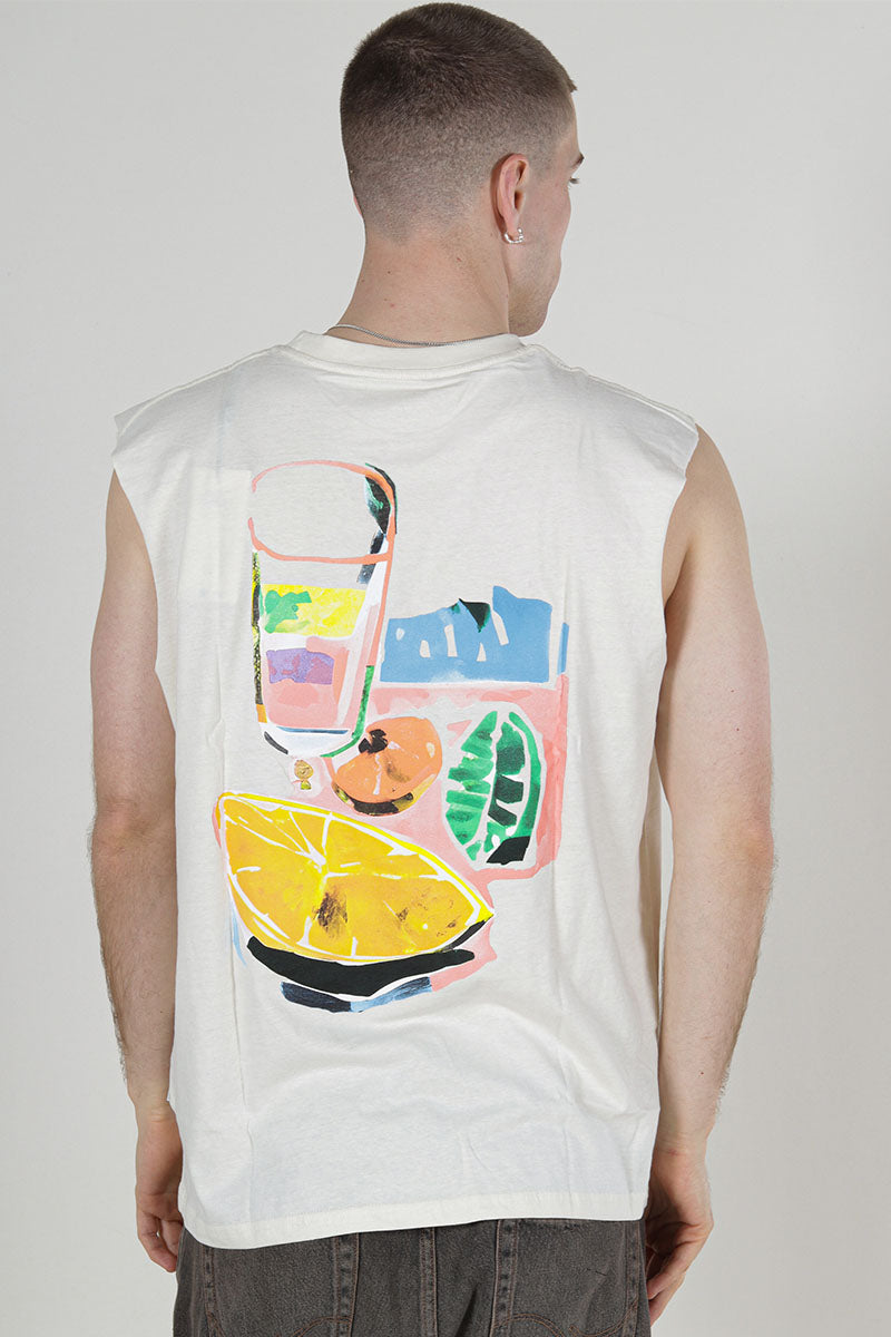 - Sandfarbenes Tanktop mit Druck auf dem Rücken