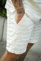 - Verfügt über zwei Fronttaschen, eine Gesäßtasche und einen Kordelzug in der Taille