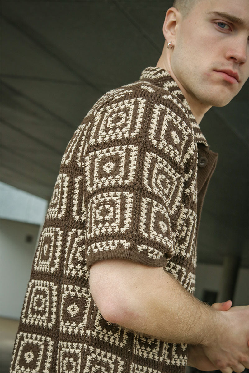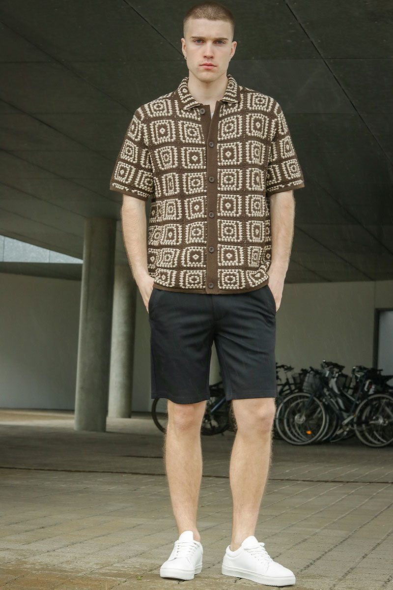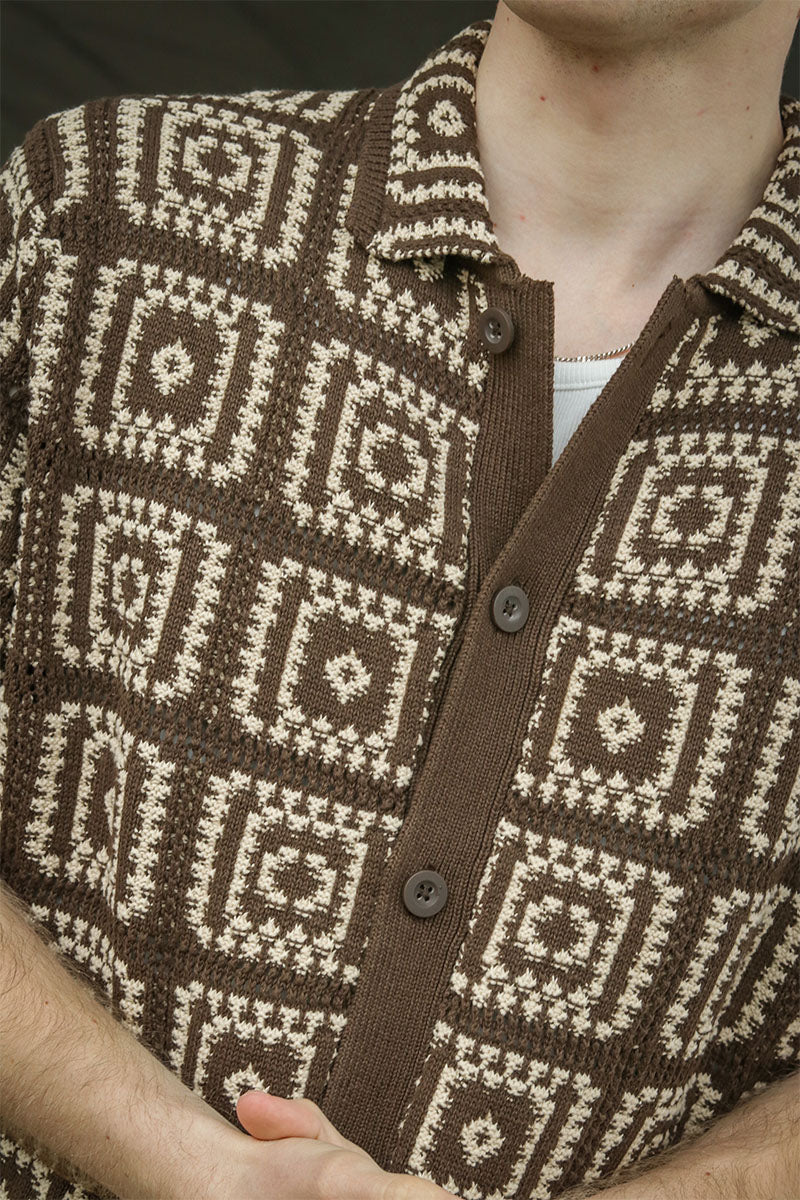 - Kurzärmliges Strickpolo mit Muster