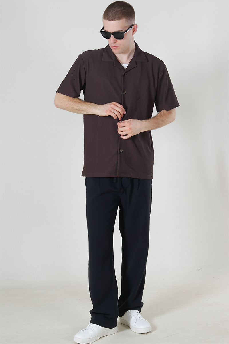 Relax Plisse Resort SS Shirt Chocolate Brown