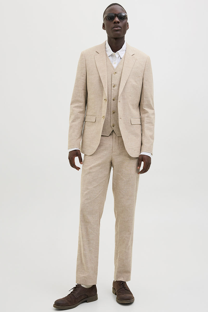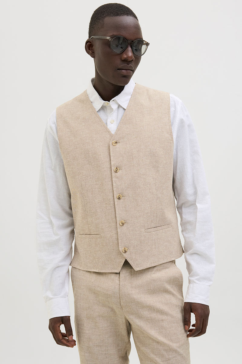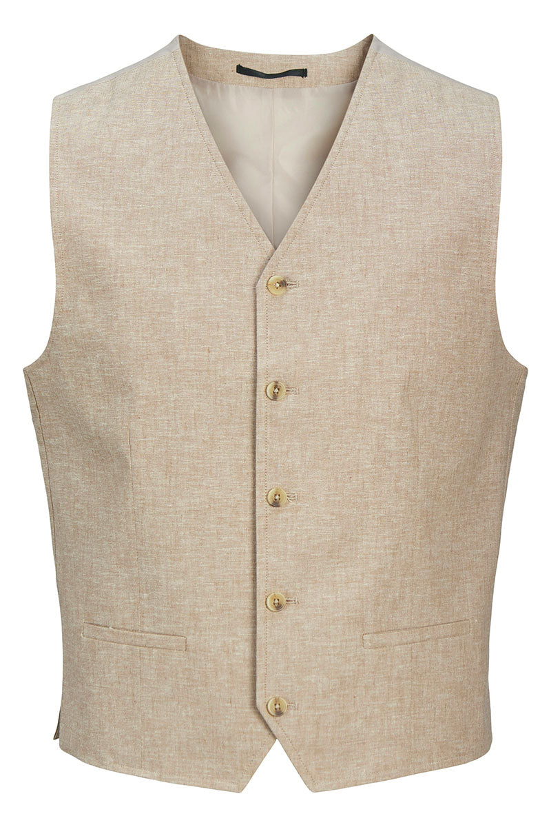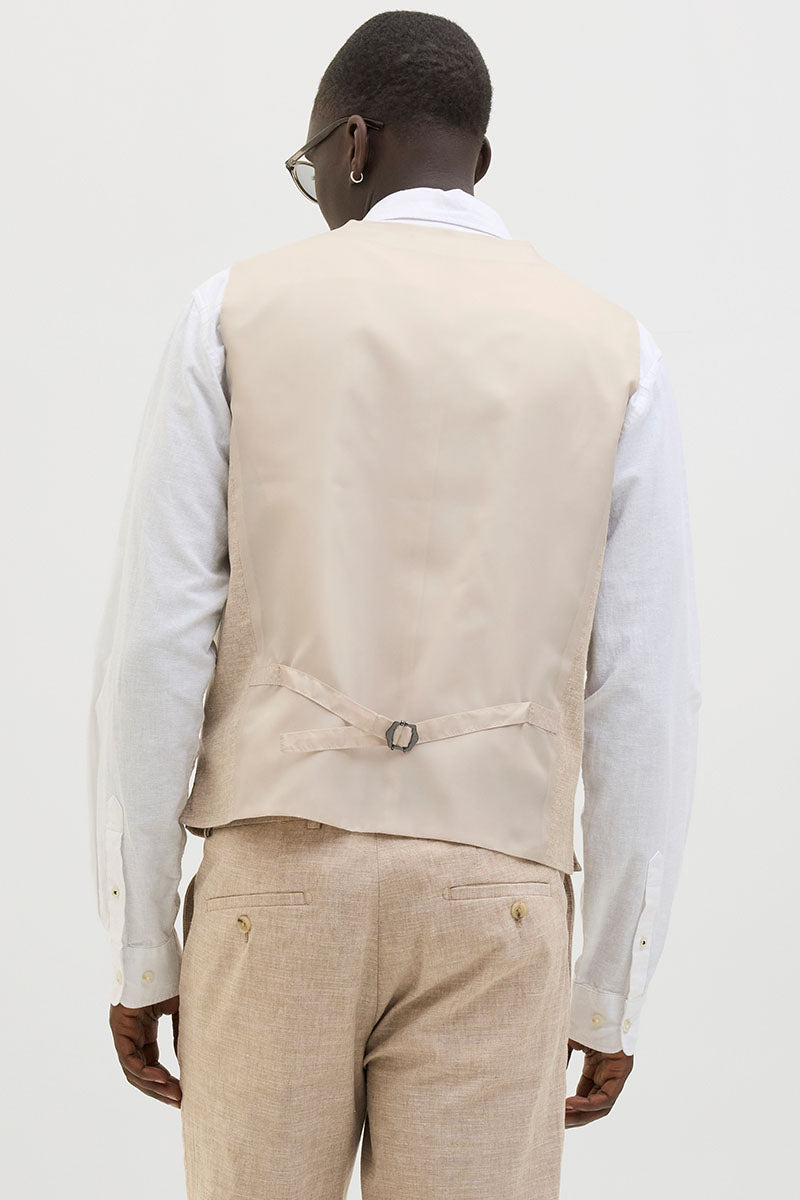 - Beigefarbene Leinenweste im Slim Fit