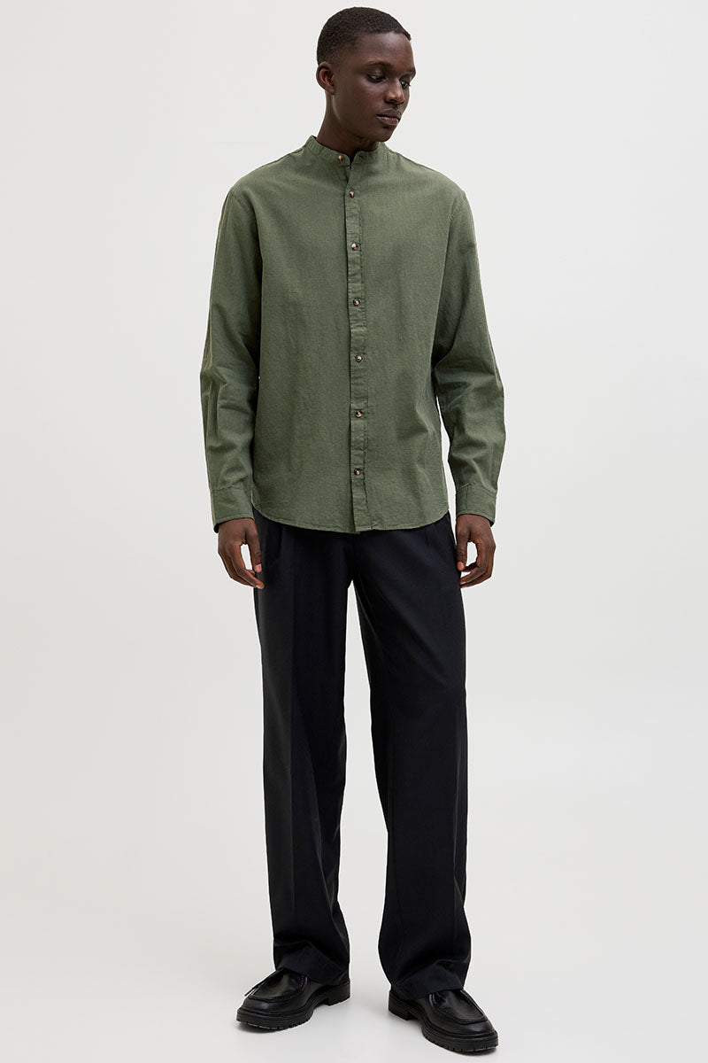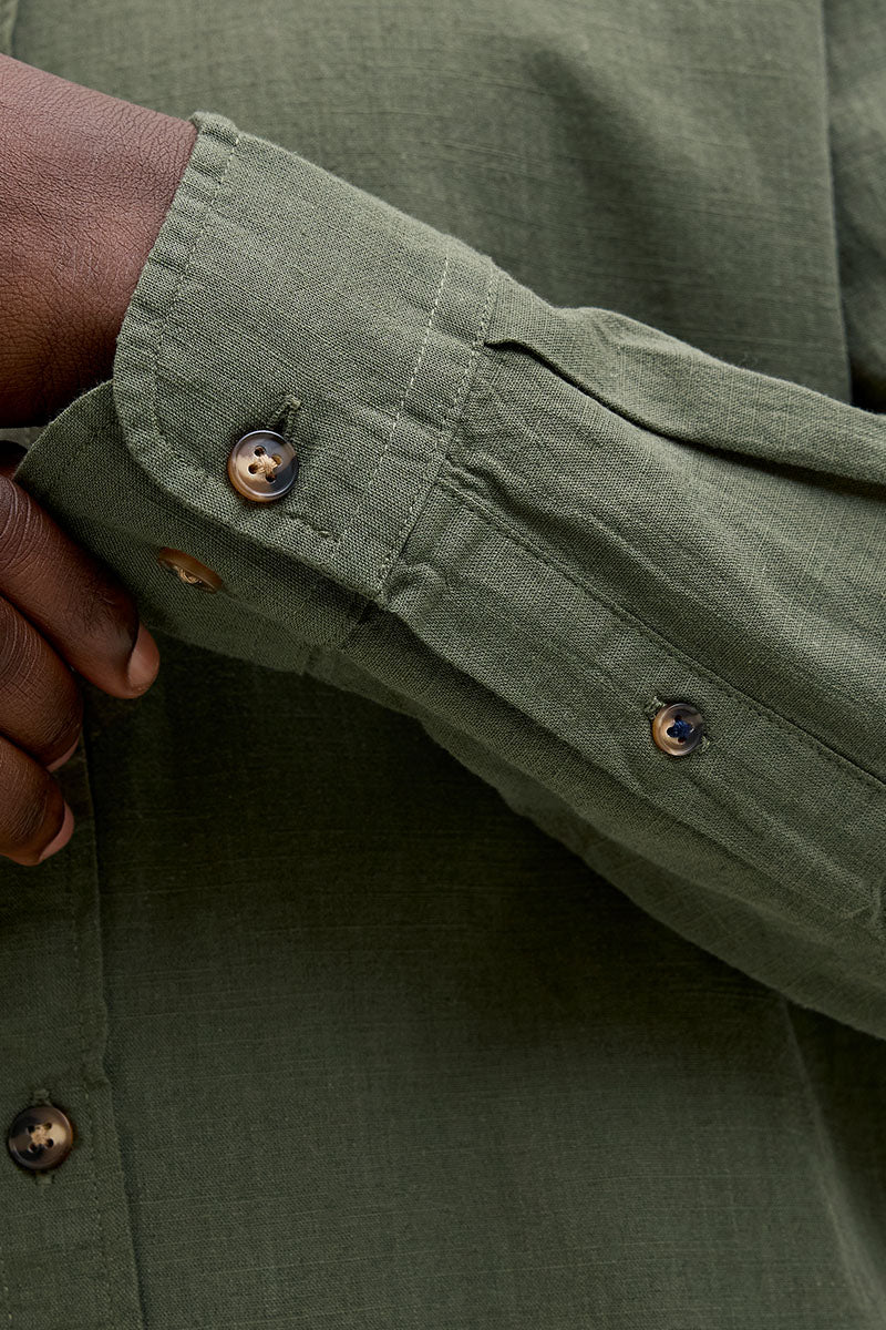 - Dunkelgrünes langärmliges Leinenhemd im Comfort Fit