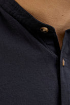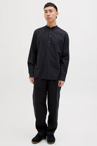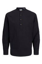 - Das Hemd hat eine halbe Knopfleiste und lange Ärmel.