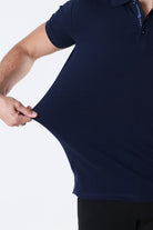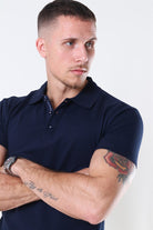 Das Muscle Fit Polo-Shirt SS in Blue Navy besteht aus einem 4-Wege-Stretch-Material und bietet somit eine fantastische Passform und Flexibilität, die perfekt für sportliche Aktivitäten geeignet ist, da es in alle Richtungen dehnbar ist und eng und bequem am Körper anliegt.