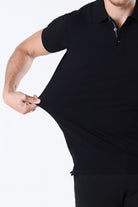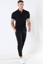 Das Muscle Fit Poloshirt in Black besteht aus 92% Bio-Baumwolle und 8% Elasthan, was es weich und dehnbar macht.