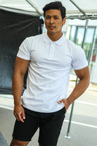 Das Muscle Fit Polo-Shirt SS in White besteht aus einem 4-Wege-Stretch-Material und bietet somit eine fantastische Passform und Flexibilität, die perfekt für sportliche Aktivitäten geeignet ist, da es in alle Richtungen dehnbar ist und eng und bequem am Körper anliegt. -