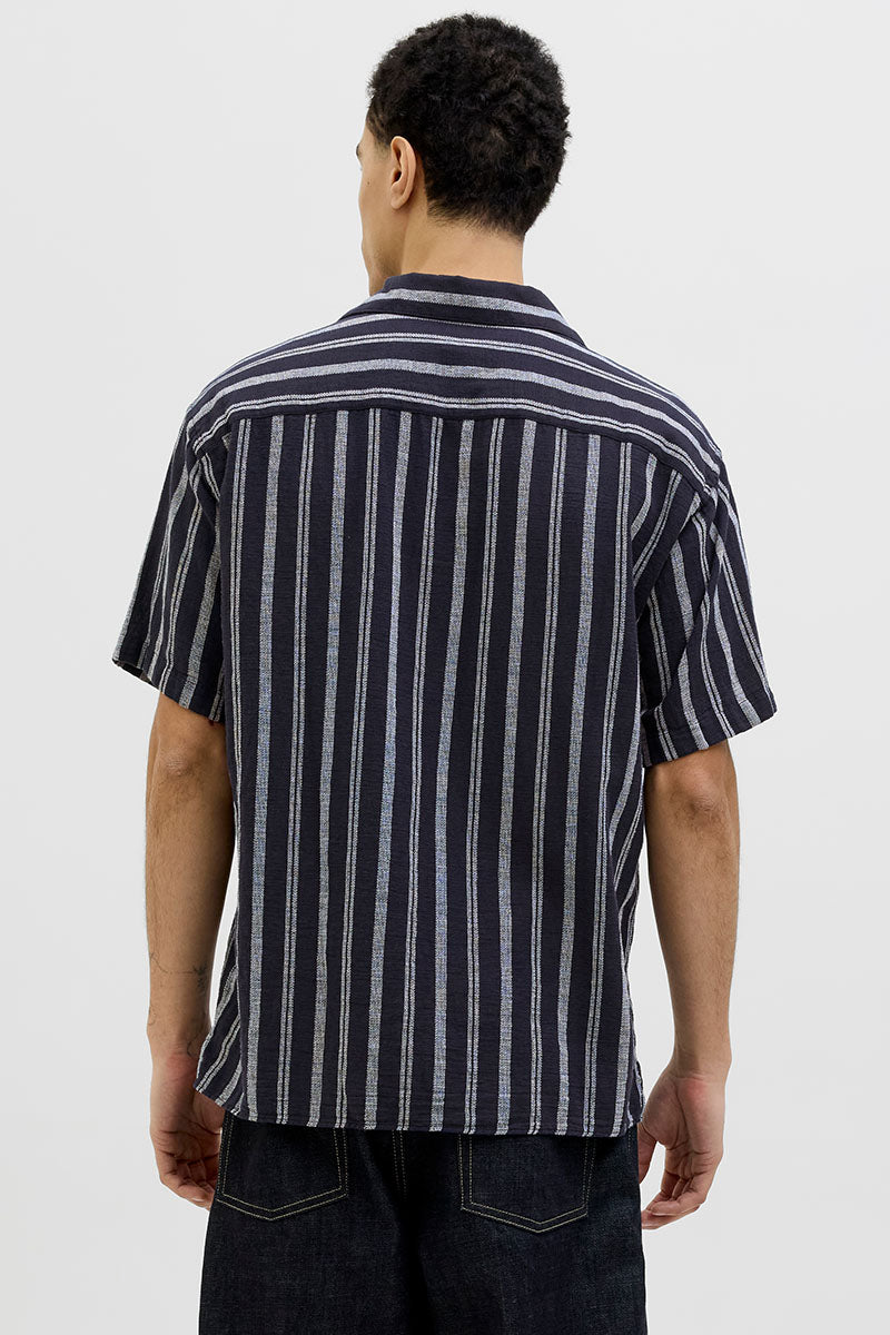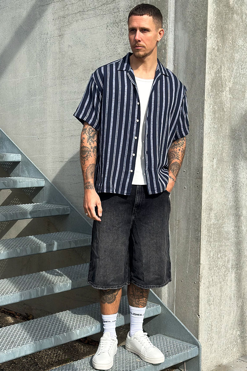JJESUMMER LINEN BLEND SHIRT LS SN Navy Big Stripe