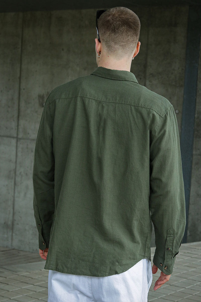 Reg New Linen Hemd LS Vetiver